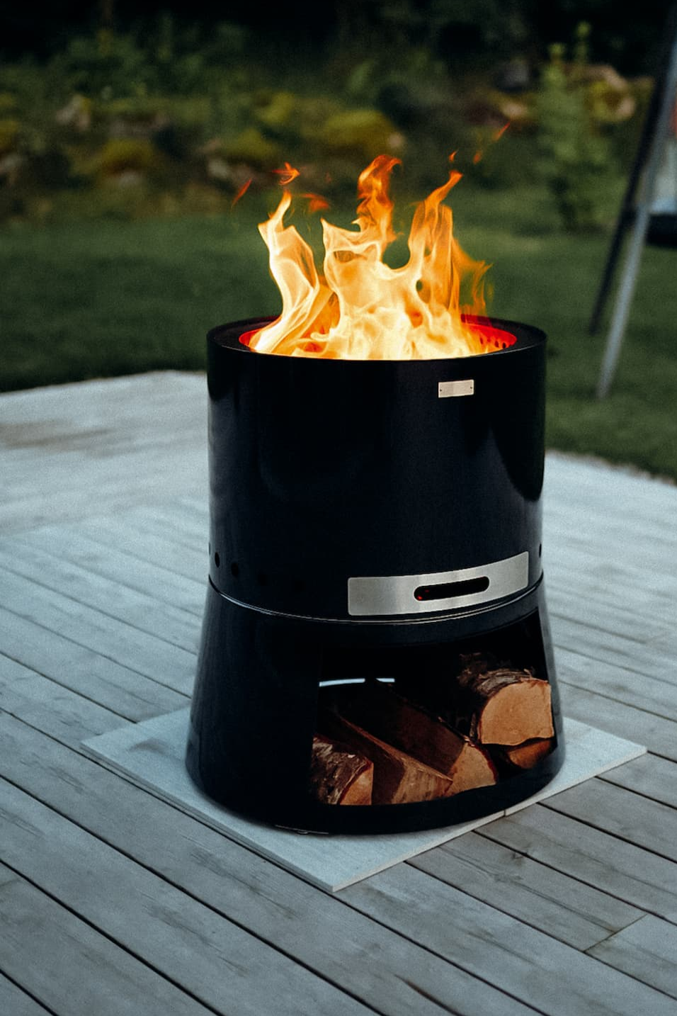 Schuif de slider van rechts naar links om het verschil tussen een NORLIVA en een normale vuurschaal te zien: